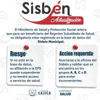 Si es beneficiario del régimen subsidiado de salud, es obligatorio estar registrado en la base de datos del Sisbén Municipal.