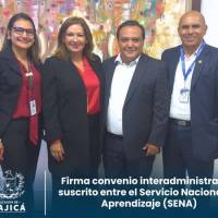 La alcaldesa, Fabiola Jacome, y el subdirector del Centro de Desarrollo Agroempresarial de Chía, Javier Ricardo Jiménez, firmaron un contrato interadministrativo para aunar esfuerzos tecnológicos, administrativos y técnicos entre la administración y la Agencia Pública de Empleo del SENA Comunica, con el objetivo de brindar oportunidades laborales de inclusión y empleo.