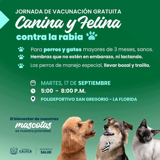 ¡No te pierdas nuestra Jornada de Vacunación contra la rabia para perros y gatos!