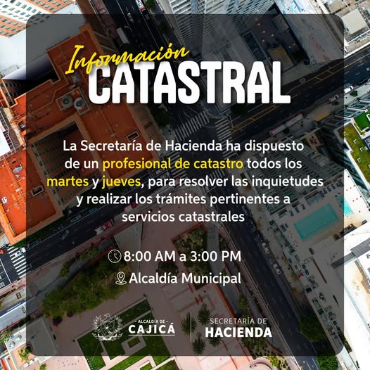 A partir de la fecha, un funcionario de Gestión Catastral estará disponible para atender las inquietudes y realizar los trámites relacionados con este servicio.
