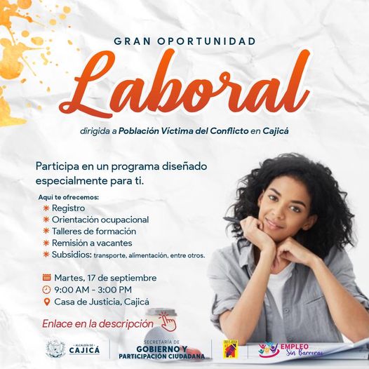 Si estás buscando empleo, te invitamos a participar en el programa del Gobierno Nacional, el Servicio Público de Empleo y la UT Me Empleo sin Barreras, para conectarte con nuevas oportunidades laborales.