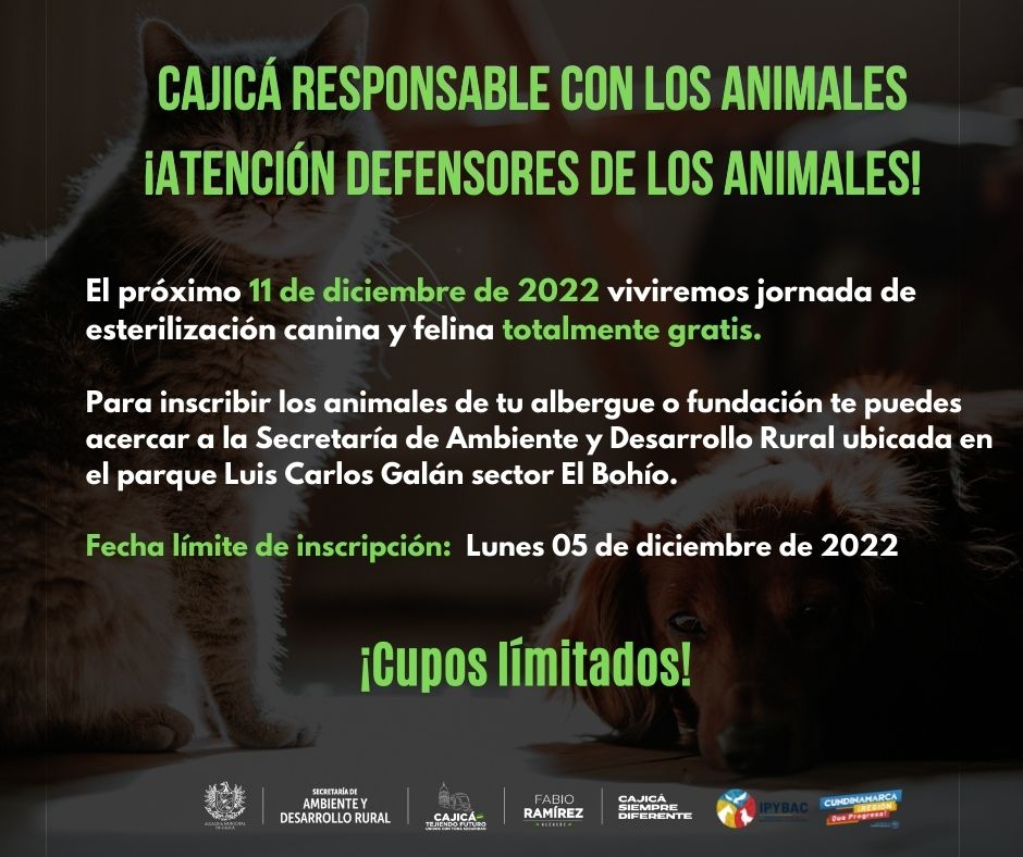 #CajicáResponsableConLosAnimales || Desde la Secretaría de Ambiente y Desarrollo Rural seguimos trabajando por el bienestar de los animales de nuestro municipio. Por eso, si tienes una fundación, albergue o te consideras defensor de los animales esta información es para ti.