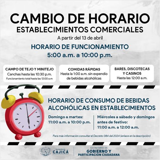 Expedimos el Decreto 084 del 2024, el cual modifica el Decreto 053 del 2023 sobre los horarios de establecimientos comerciales en Cajicá.