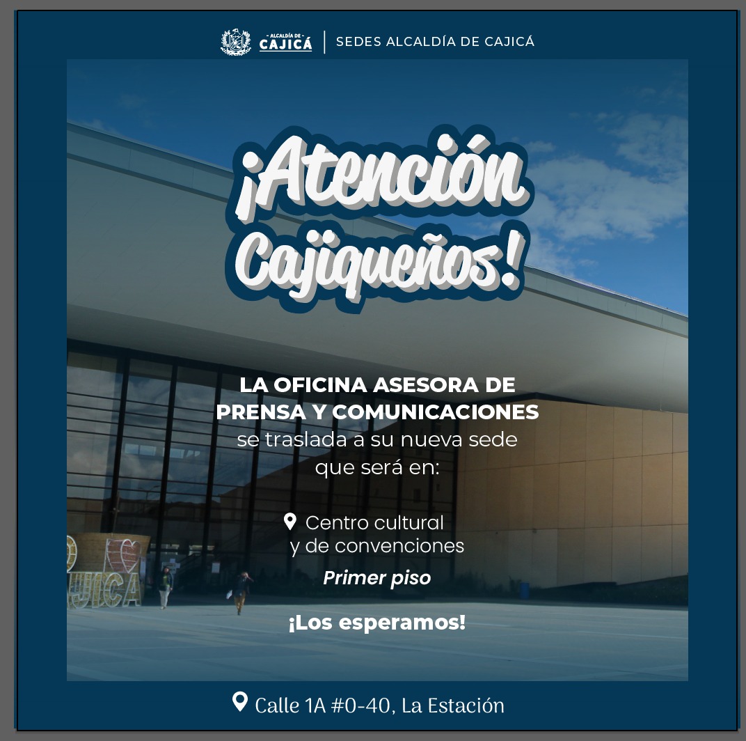 La Oficina Asesora de Prensa y Comunicaciones de Cajicá, en busca de una mejor atención a los cajiqueños se trasladó al Centro Cultural y de Convenciones de Cajicá.