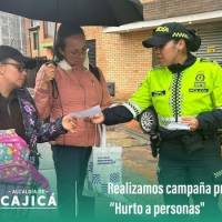 Continuando con nuestras actividades preventivas, llevamos a cabo la campaña “Prevención de hurto a personas” en los sectores Coliseo Fortaleza de Piedra y Las Villas, bajo el liderazgo de la Policía Nacional de Cajicá.