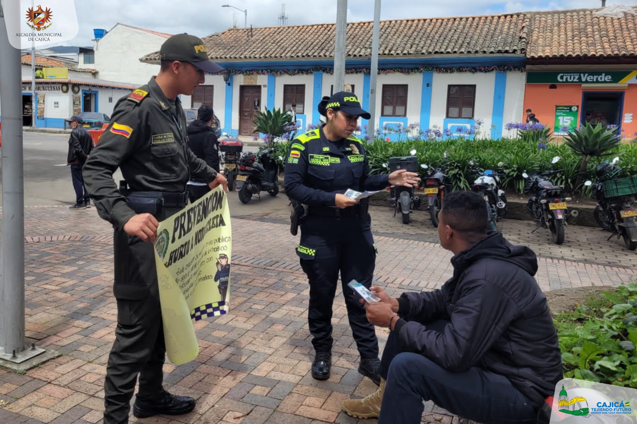 👮🏻 #CajicáSegura ll La Policía Nacional y el gestor de prevención y seguridad ciudadana e integrantes del Modelo Nacional de Vigilancia Comunitaria por Cuadrantes (MNVCC), realizan campañas pedagógicas enfocadas a prevenir el hurto en todas sus modalidades, brindando información y sensibilizando a la comunidad para que adopten medidas de precaución, con el fin de no ser víctimas de este flagelo y dar aviso oportuno ante cualquier emergencia.