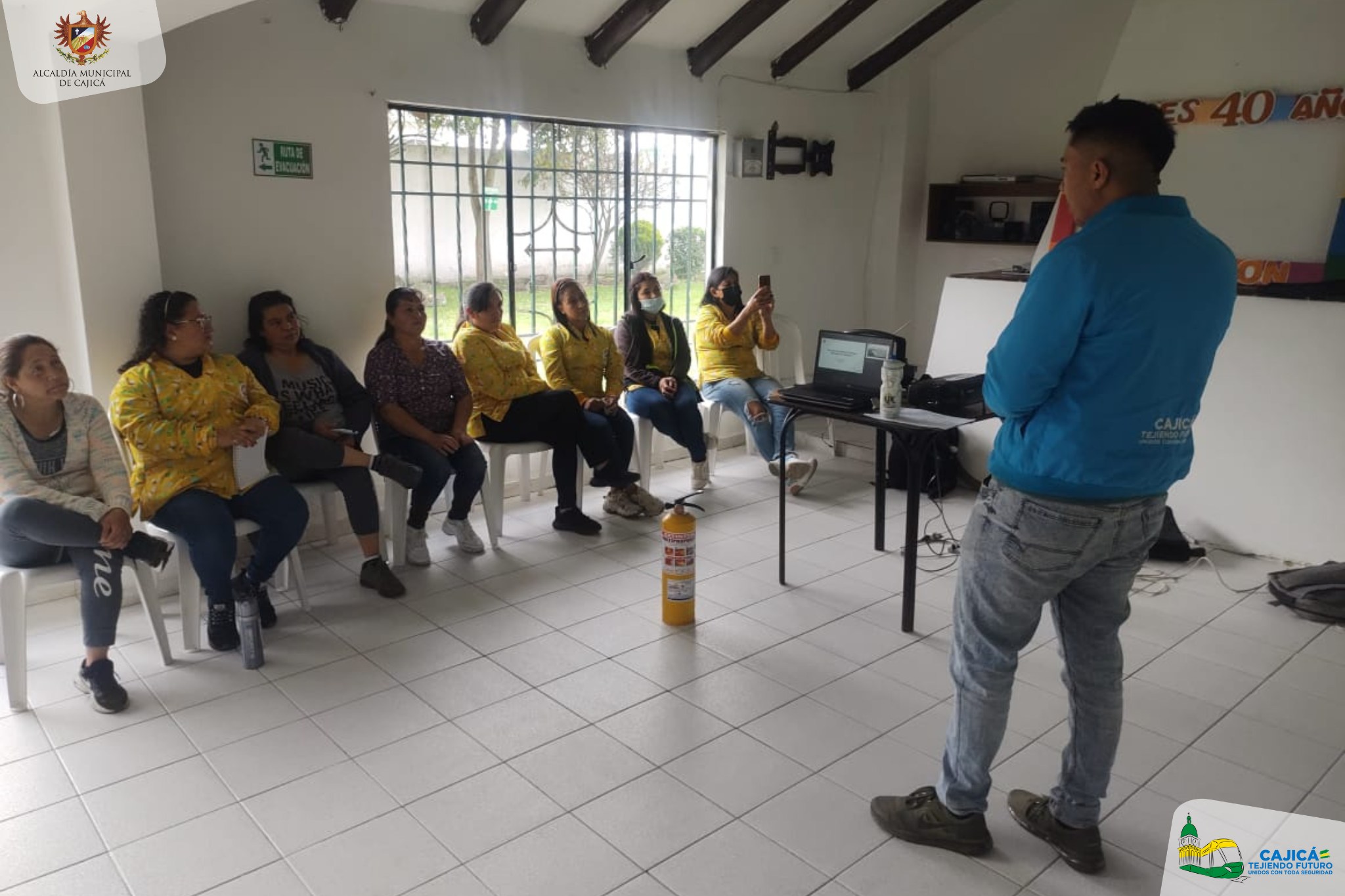 La Dirección de Gestión del Riesgo junto con el Cuerpo Oficial de Bomberos del municipio de Cajicá, teniendo en cuenta el plan de gestión del riesgo de desastres y la estrategia municipal para la respuesta de emergencias, realizaron una capacitación al personal del Hogar Infantil El Canelón, donde se trabajaron temas de primeros auxilios, primer respondiente, primeros auxilios psicológicos, manejo de extintores, evacuación entre otros aspectos; con el objetivo de fortalecer las habilidades de cada una de las personas, para que así mismo tengan conocimiento de como actuar al momento de una emergencia.