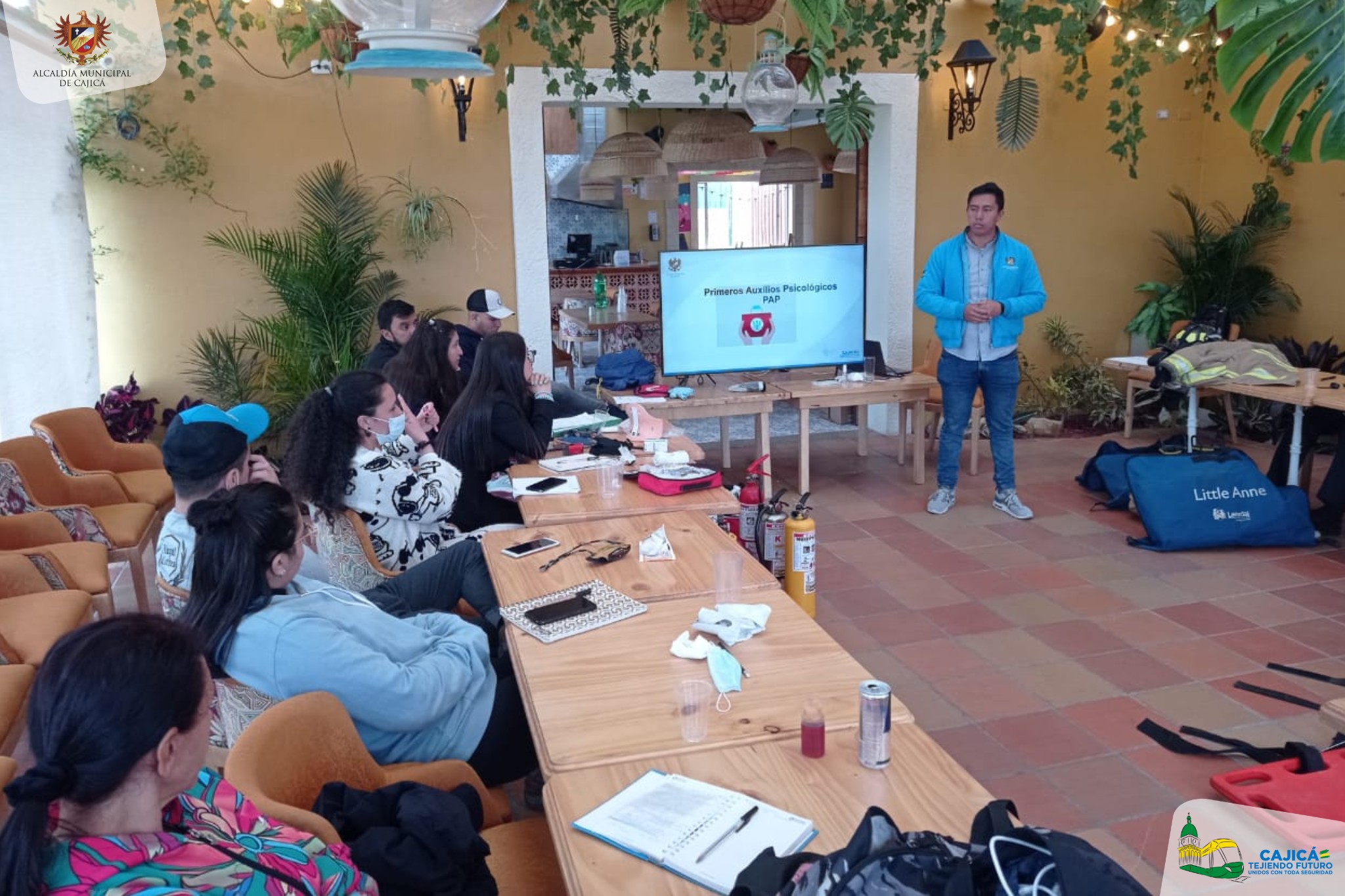 La Dirección de Gestión del Riesgo junto con el Cuerpo Oficial de Bomberos del municipio de Cajicá, teniendo en cuenta el plan de gestión del riesgo de desastres y la estrategia municipal para la respuesta de emergencias, realizaron una capacitación a la brigada de emergencias del restaurante Rancho MX, donde se trabajaron temas de primeros auxilios, RCP, uso de extintores, camillaje, primer respondiente, primeros auxilios psicológicos, entre otros; con el fin de reforzar las habilidades de cada una de las personas y así mismo sepan cómo actuar al momento de una emergencia.