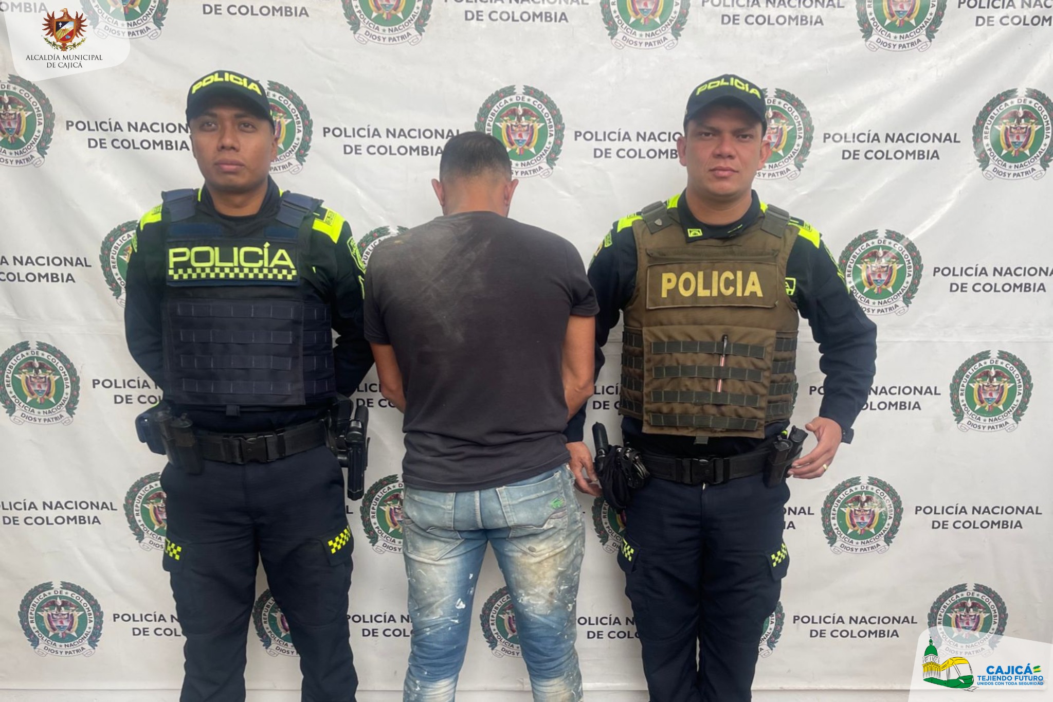 🚨 #CajicáSegura ll En labores de patrullaje y control, la Fuerza Pública realiza la captura de un hombre por el delito de daño en bien ajeno en el Parque Principal de Cajicá, incautando un arma corto punzante tipo cuchillo.