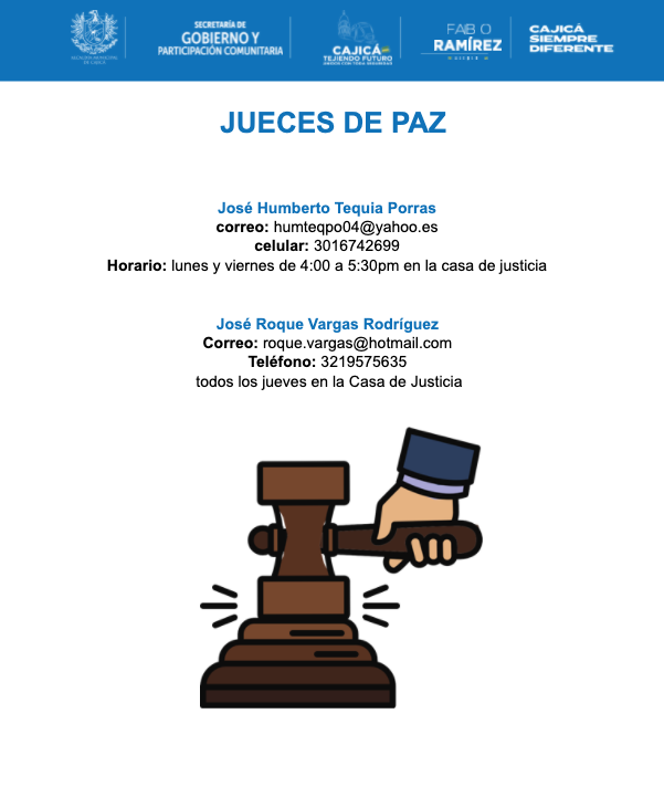 - Proveer a la población del municipio de Cajicá, herramientas para que puedan acceder a la justicia, sin tener que salir de sus hogares.