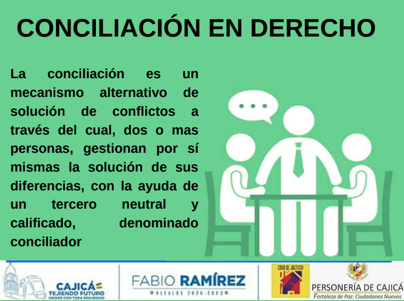 Con fundamento en el artículo 19 de la Ley 640 de 2001 la conciliación es un mecanismo de solución de conflictos mediante el cual dos o más personas involucradas en una controversia gestionan autónomamente la solución del mismo, con la intervención de un tercero imparcial, neutral e independiente denominado Conciliador.