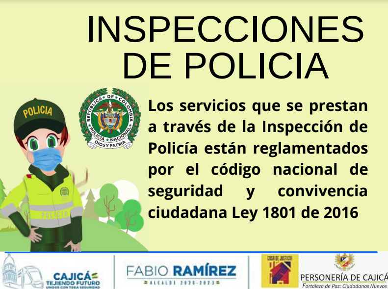 Los servicios que se prestan a través de la Inspección de Policía están reglamentados por el código nacional de seguridad social y convivencia ciudadana ley 1801 de 2016. La inspección protege al ciudadano en materia de: