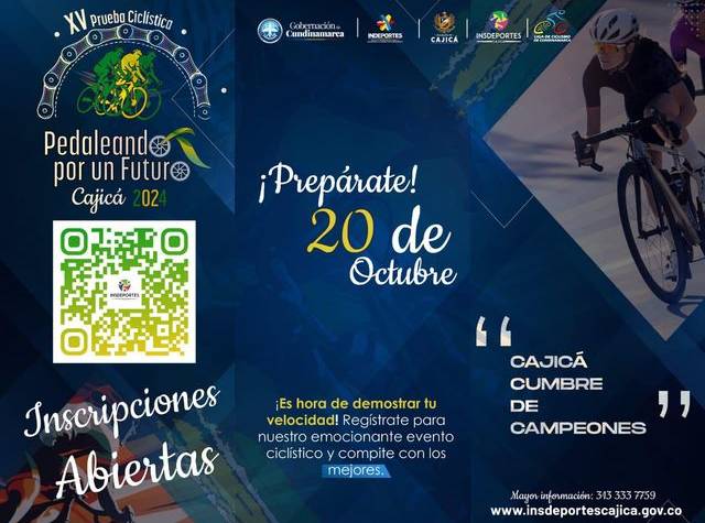 ¡Familia del ciclismo, prepárense! Se acerca la XV edición de la carrera ciclista más emocionante de la temporada en el municipio de Cajicá: “Pedaleando por un Futuro 2024”. Este evento se realizará en cumplimiento de la meta 204 del PDM por una Cajicá ideal. El próximo domingo 20 de octubre, a partir de las 7:00 a.m., los invitamos a vivir una experiencia única en un gran circuito por las calles de nuestro municipio. Inscríbete y participa. Encuentra toda la información…