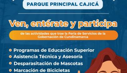 #Prográmate || La Gobernación de Cundinamarca y la Administración Municipal de Cajicá extienden la cordial invitación a participar de la gran 𝙁𝙀𝙍𝙄𝘼 𝘿𝙀 𝙎𝙀𝙍𝙑𝙄𝘾𝙄𝙊𝙎 para la región de Sabana Centro. En esta importante jornada contaremos con las secretarias y dependencias del Departamento. Un espacio donde la comunidad podrá participar de…