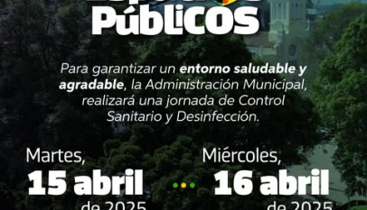 Del martes 15 al miércoles 16 de abril de 2025 se realizará una jornada de control sanitario y desinfección en el sector Guachancio.Invitamos a la comunidad del sector a seguir las recomendaciones establecidas para garantizar el éxito de la jornada.¡Trabajamos por una Cajicá más limpia y saludable!
