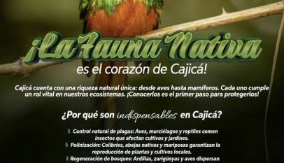 ¿Sabía que la fauna nativa de Cajicá controla plagas, poliniza cultivos y contribuye a la reforestación de bosques? ¡Cuidarlos es cuidarnos! En cumplimiento de la meta 280 del PDM, Cajicá Ideal.