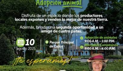Ven, apoya a nuestros campesinos y adopta a un amigo fiel que espera un hogar. Fecha: domingo, 10 de agosto de 2025Horario adopción de animales: 9:00 a. m. a 1:00 p. m.Horario mercados campesinos: 9:00 a. m. a 4:00 p. m.Lugar: Parque Principal En cumplimiento de las metas 235 y…