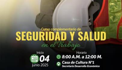 El Servicio Nacional de Aprendizaje (SENA) invita a participar en el curso complementario de Seguridad y Salud en el Trabajo. Fecha de inicio: 4 de junio de 2025Requisito: Estar inscrito en la plataforma Sofía Plus. ¡Los esperamos!