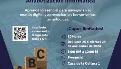La Secretaría de Educación invita a la comunidad a participar en el taller de alfabetización informática, donde aprenderán las bases para navegar en el mundo digital y utilizar herramientas tecnológicas para el día a día. Detalles del taller: Fechas: Del lunes 25 al viernes 29 de noviembre de 2024. Lugar:…