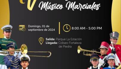 La Administración Municipal, a través de la Secretaría de Educación, invita a los cajiqueños a disfrutar de este festival que trae las mejores interpretaciones músico marciales del municipio y la región. Fecha: Domingo, 1 de septiembre Hora: 8:00 a.m. Inicio: Parque La Estación Finaliza: Coliseo Fortaleza de Piedra Disfrutemos con…