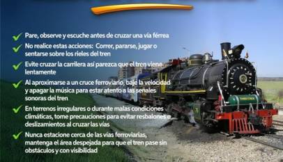 La Secretaría de Tránsito, Transporte y Movilidad invita a la comunidad a tomar las siguientes medidas de seguridad cerca de las vías férreas. Alcance en la meta 244 del PDM, Cajicá Ideal.