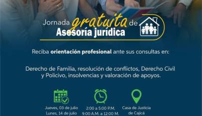 La Secretaría de Gobierno y Participación Ciudadana, con el apoyo del Ministerio de Trabajo y sus Inspectores de Trabajo, invita a una jornada gratuita de asesoría laboral. Si usted es empresario, empleado o habitante de Cajicá, esta jornada es para usted.Tendrá orientación personalizada y asesoría legal sin costo. Fecha: 7…