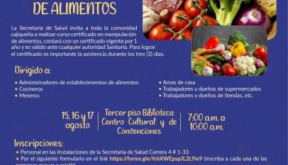 #Capacitación ||La Secretaría de Salud de Cajicá lo invita a participar del Curso de Manipulación de Alimentos totalmente gratuito, que se realizará los días 15, 16 y 17 de agosto de 2023 de 7am a 10am. Inscribase aquí: https://forms.gle/fchXWEpspJL2L9ix9 #CajicáTejiendoFuturo #UnidosConTodaSeguridad