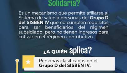 Aún puede estar asegurado en salud gracias a la Contribución Solidaria. Afíliese al Régimen Subsidiado sin necesidad de cotizar al régimen contributivo. Consulte las tarifas 2025, requisitos y puntos de afiliación aquí:https://update.cajica.gov.co/afiliacion-en-salud/ Contacto:Correo: siac@update.cajica.gov.coTeléfono: 320 845 0097