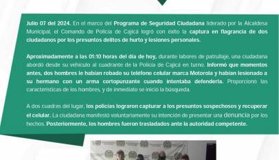Continuando con nuestras actividades preventivas, la Secretaría de Seguridad y Convivencia, en articulación con el Comando de Policía de Cajicá, viene liderando planes diferenciales dirigidos a los distintos grupos poblacionales en los diversos sectores del municipio. Estas actividades incluyen la verificación de antecedentes, revisión de vehículos, planes preventivos, imposición de…