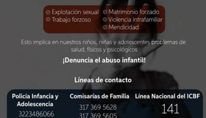 Los índices de trabajo infantil a nivel mundial son alarmantes. Para ello, disponemos de los siguientes canales de atención para denunciar estos delitos. Nuestros niños y niñas son nuestra prioridad, denunciar está en tus manos. Meta 75 y 338 del PDM, Cajicá Ideal. ¡Conoce, actúa y denuncia!