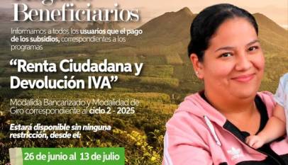 El Departamento de Prosperidad Social, a través de los programas Renta Ciudadana y Devolución del IVA, inicia el segundo ciclo de pagos en las modalidades bancarizadas y giros. Puntos de pago autorizados: Banco Agrario Lunes a viernes: 7:00 a. m. a 4:30 p. m. Sábados: 8:00 a. m. a 12:00…