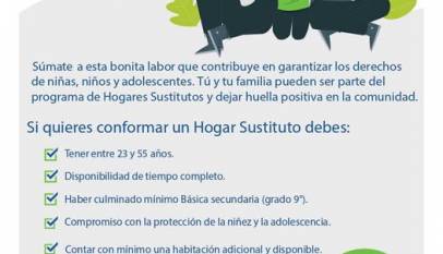 El Instituto Colombiano de Bienestar Familiar (ICBF) y la Corporación Amor por Colombia (AXC) invitan a participar en la modalidad de atención de Hogar Sustituto, que brinda una oportunidad a niños, niñas y adolescentes al ofrecerles un espacio donde puedan ser acogidos, protegidos y acompañados de manera provisional por una…