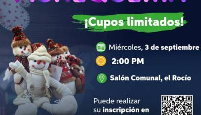 Participe en los cursos y talleres creados especialmente para usted en alianza con el SENA. Curso Muñequería Navideña Fecha: miércoles, 3 de septiembre Hora: 2:00 p.m. Lugar: Salón Comunal El Rocío Inscripciones: https://docs.google.com/…/1FAIpQLSfynXxYHpGCeT…/viewform Taller Tejido Intermedio Fecha: jueves, 4 de septiembre Hora: 10:00 a.m. Lugar: Secretaría de Desarrollo Social –…