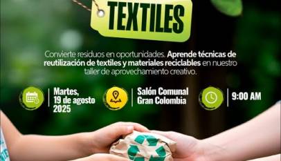 Invitamos al taller de aprovechamiento de residuos y textiles para aprender técnicas de transformación creativa que permitirán reducir, reutilizar y reinventar. Actividad en articulación con la CAR y la Dirección Mujer y Género. Inicio del taller:Martes, 19 de agosto de 20259:00 a. m.Salón comunal Gran Colombia Avanzando con las metas…