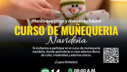 La creatividad, el talento y el espíritu navideño se unen en este espacio hecho para ti. Te invitamos al curso de muñequería navideña dirigido a mujeres que quieran aprender, crear y emprender con sus propias manos. Contaremos con dos fechas establecidas en diferentes sectores: Jueves, 14 de agosto de 2025…
