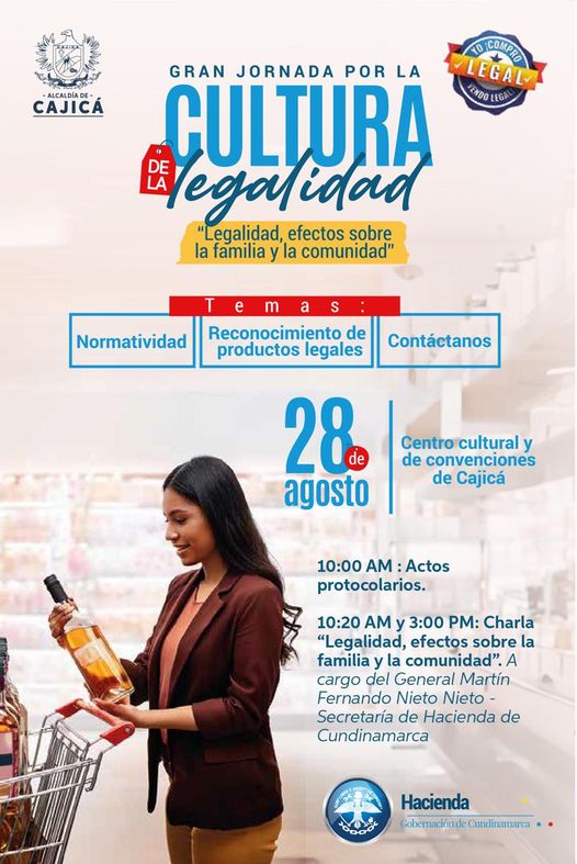 La Administración Municipal y la Gobernación de Cundinamarca realizarán la “Gran Jornada por la Cultura de la Legalidad”. Un espacio donde se tratarán temas como: