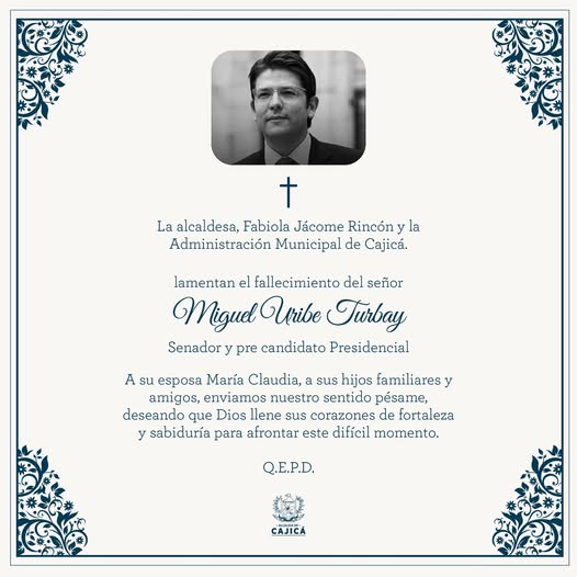 La alcaldesa Fabiola Jácome lamenta profundamente el fallecimiento del senador Miguel Uribe Turbay.