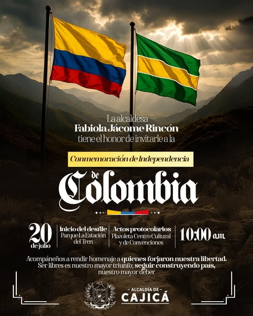 La alcaldesa Fabiola Jácome tiene el honor de invitar a la comunidad a conmemorar el 20 de julio, una fecha que nos recuerda el coraje y la determinación de quienes lucharon por la libertad de nuestra nación.