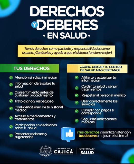 Deberes: afiliarse, cuidar su salud, respetar al personal de salud y hacer uso adecuado de los servicios.