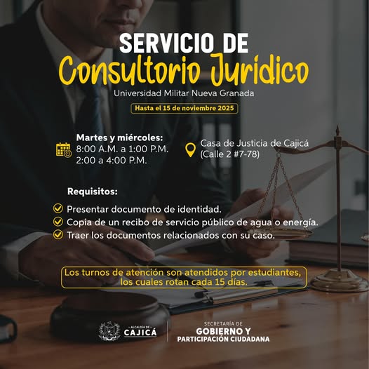 ¿Tiene dudas legales? El Consultorio Jurídico Presencial de la Universidad Militar Nueva Granada ofrece atención para resolver inquietudes en las siguientes áreas: