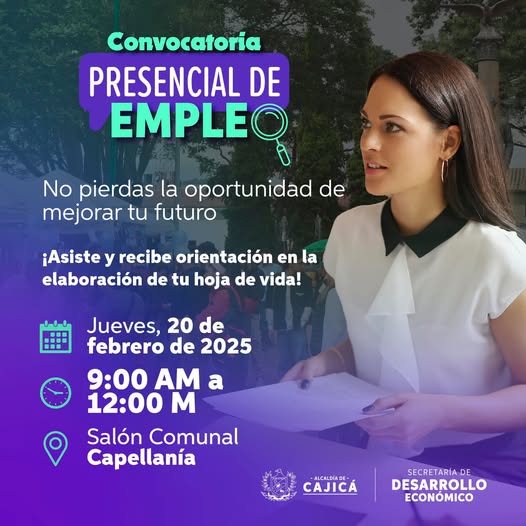 Lleva tu hoja de vida y participa en esta jornada con la presencia de importantes empresas como Compensar, Cafam, Casa Limpia, Astempro, Club Militar, SENA, Aliados Laborales, Brinsa, Evoluxa SAS y muchas más.