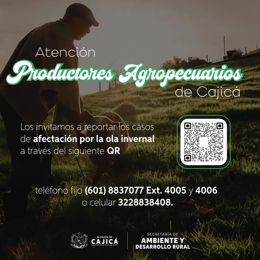 La Secretaría de Ambiente y Desarrollo Rural, en compañía del Minagricultura, invita a los productores agropecuarios del municipio a reportar cualquier afectación en su actividad productiva causada por la emergencia invernal.