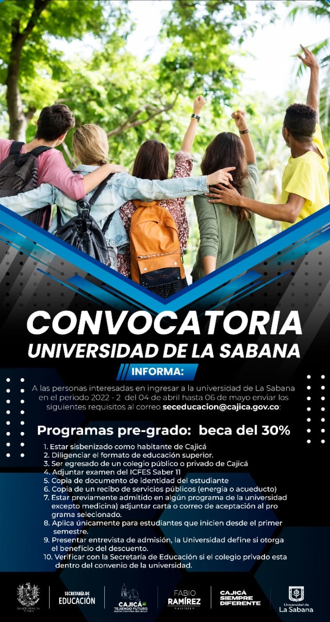 || La Secretaría de Educación y la Universidad La Sabana invitan a la comunidad cajiqueña a inscribirse en los programas académicos para el segundo semestre de 2022 y acceder a la beca del 30 % de descuento.