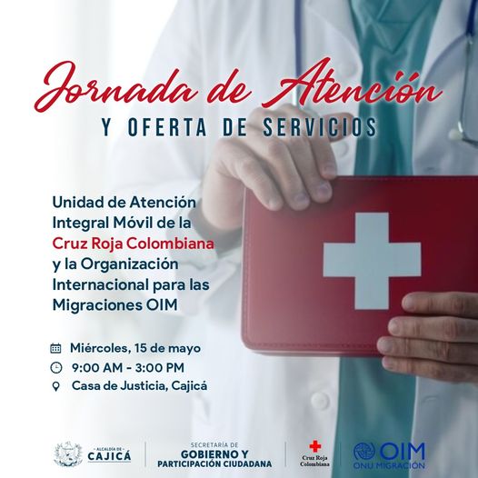 La Unidad de Atención Integral Móvil de la Cruz Roja Colombiana y la Organización Internacional para las Migraciones OIM estarán en Cajicá para ofrecerte servicios gratuitos.