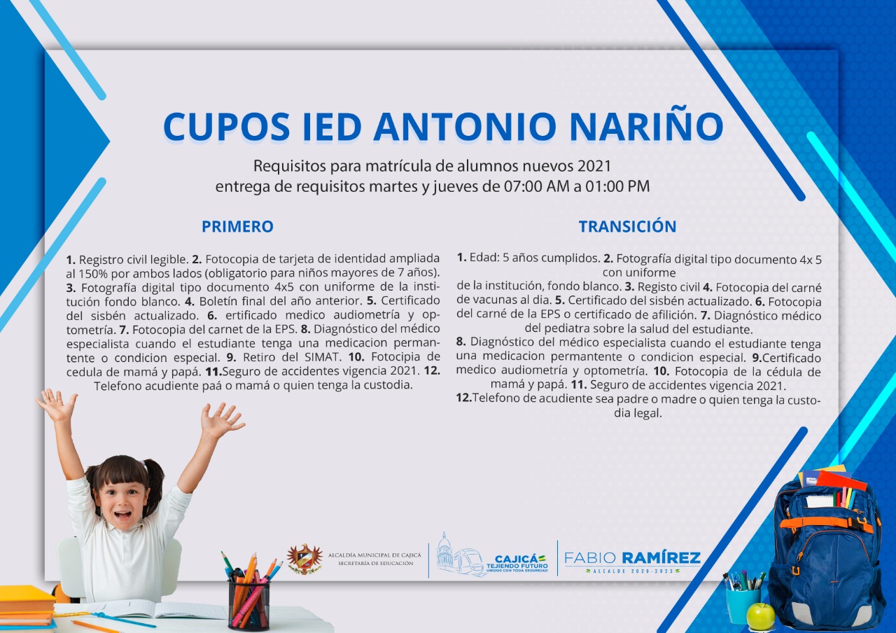 #IMPORTANTE || La Secretaría de Educación de Cajicá y la IED Antonio Nariño informan sobre la ampliación de cupos escolares para transición y primaria.