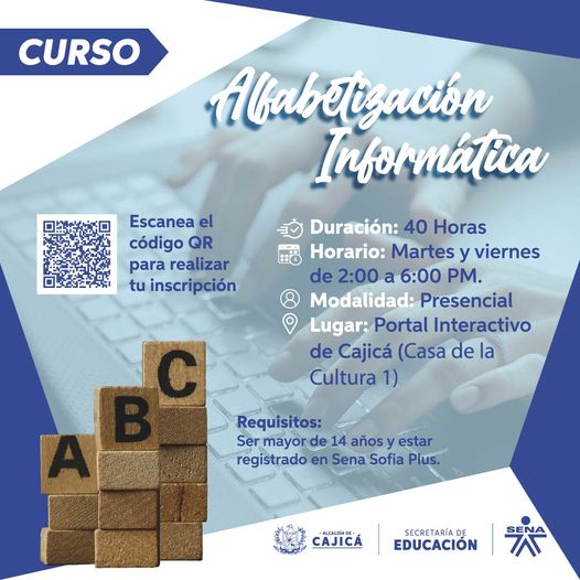 La Secretaría de Educación y el Sena invitan a participar en el curso de alfabetización informática.