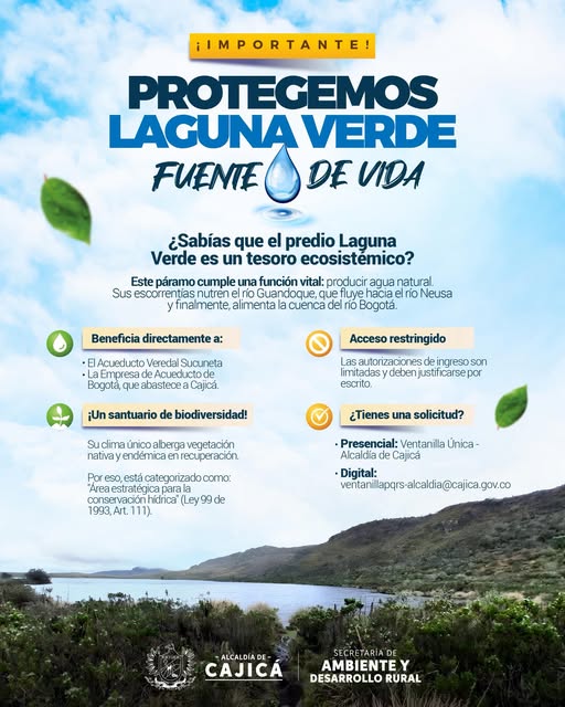 De Laguna Verde. Este páramo alimenta el río Guandoque, el Neusa y hasta el río Bogotá. Es el corazón de páramos que produce agua para Cajicá. Su vegetación endémica y sus riachuelos son irremplazables.