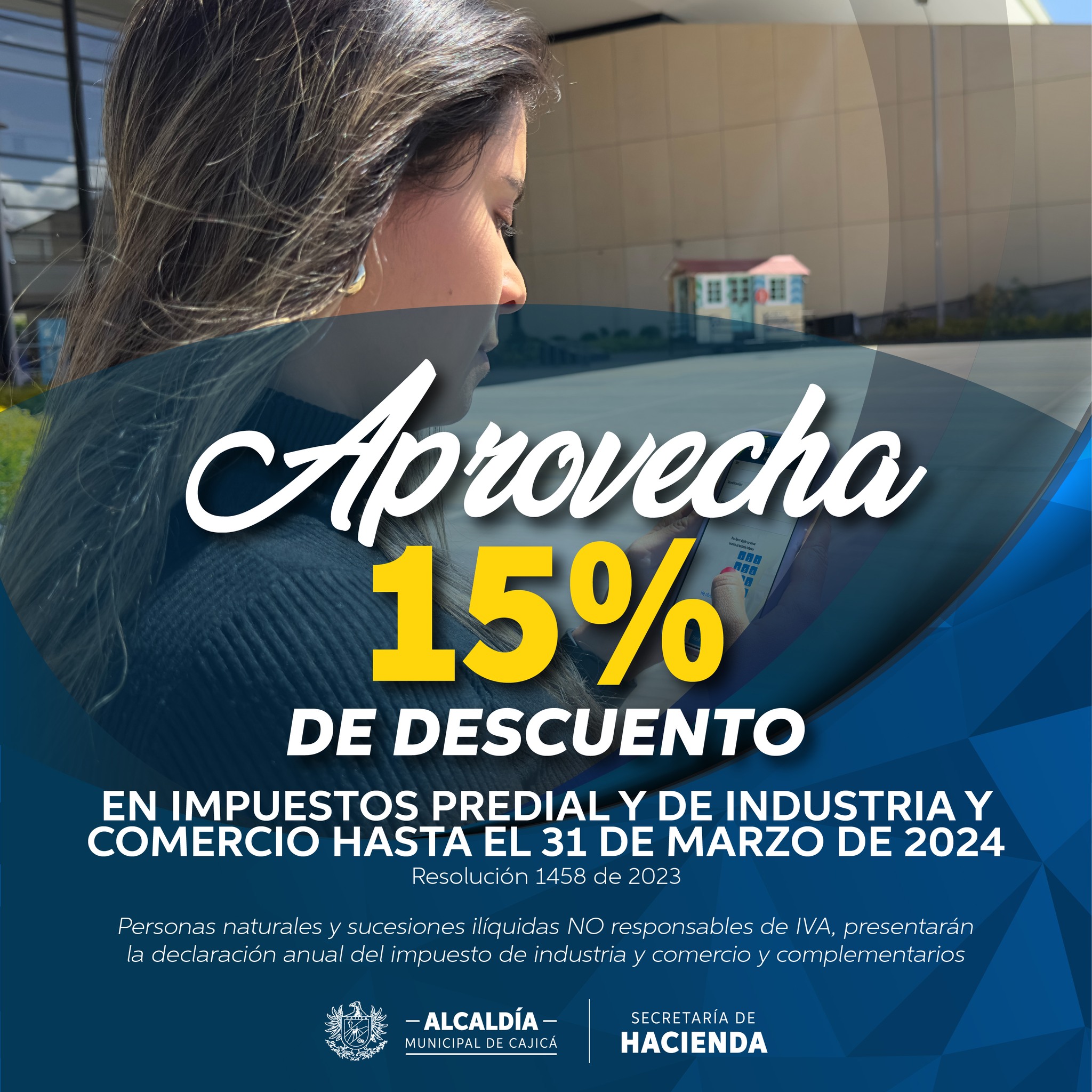 ¡Aprovecha el descuento del 15% en Impuesto Predial y de Industria y Comercio!