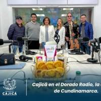 La alcaldesa Fabiola Jacome, junto al director del Instituto Municipal de Cultura y Turismo de Cajicá, Darwin Trujillo, la secretaria de Planeación, Lorena Tovar, y el talentoso artista cajiqueño Juanfe Sánchez, visitaron la emisora El Dorado Radio.