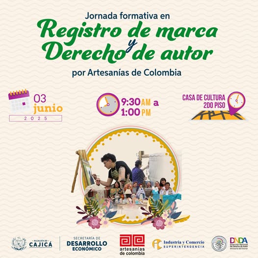 La Secretaría de Desarrollo Económico, en articulación con Artesanías de Colombia, realizará una jornada presencial sobre propiedad intelectual, enfocada en registro de marca y derechos de autor.